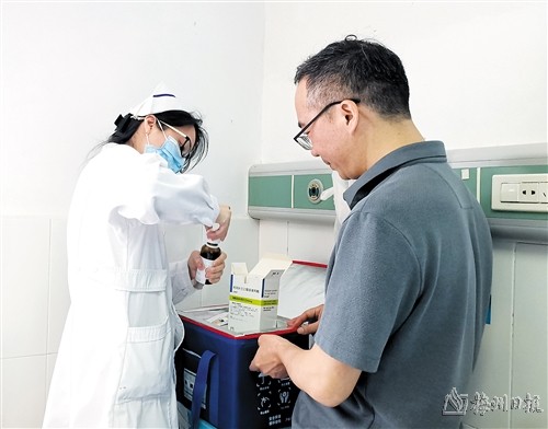 本报讯 (记者吴丽伶)11月7日,中山大学附属第三医院粤东医院神经内科主任饶俊平为患者陈果毅开出口服药利司扑兰。这也是首张在梅州开出的罕见病SMA(脊髓性肌萎缩症)口服药医保处方。