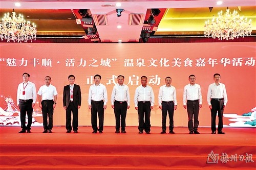 11月3日晚,第六届世界客商大会丰顺县分会场系列活动欢迎晚宴暨“魅力丰顺·活力之城”温泉文化美食嘉年华活动启动仪式在金德宝凯悦国际温泉酒店举行。启动仪式上,与会领导嘉宾观看了丰顺县宣传推介短片和文艺表演,直观立体感受丰顺县经济社会发展成果和城乡融合发展新貌。
