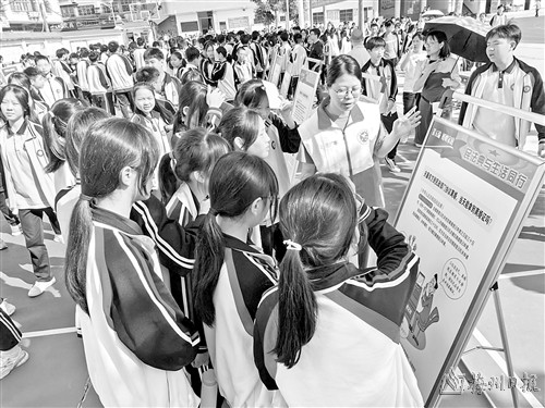 随后,工作人员向学生们赠送了印制有法治内容的一批学习用品(戒尺)、“绿书签”,发放了普法宣传手册等宣传资料6000余份。