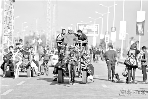 11月7日,在加沙地带中部地区,巴勒斯坦人向南部迁移。