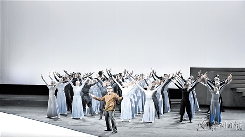 客家山歌音乐剧《林风眠》总导演李建生表示,林风眠是用中西调和的方式,孜孜不倦追求中西调和艺术融合理念的大师。中西调和在这部剧里面,同时体现在音乐表演和美学上。“该剧整体的调性是‘黑与白’,黑白两色为观众营造出一种走进黑与白世界的体验,用美术家的方式讲述美术家的人生。这是一个整体美学方向。我们还采用了中国画的笔触,包括水墨等这些空灵的哲学意味的空间设计,共同组成的一个中西调和的呈现方式。这是该剧的一大亮点。”李建生说。
