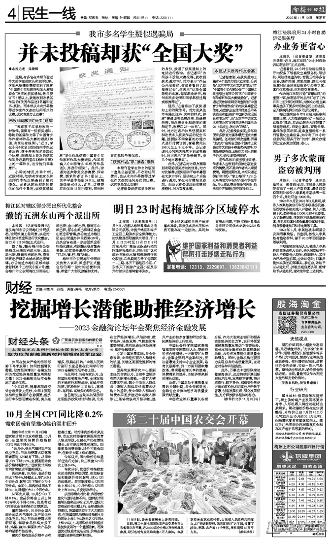 若作品被正规出版社收录,作者本人应收到来自该出版社发来的稿费,而不是向作者本人索要费用。需要说明的是,本报只通过《梅州日报》、“掌上梅州”APP、公众号等官方平台对外发布学生作品,与上述比赛没有任何关系,也未向外界推荐过任何学生作文。