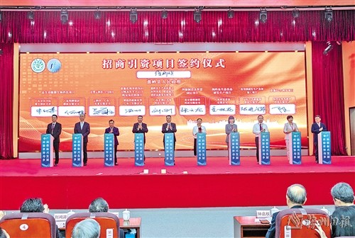 大会还举行了第六届世界客商大会蕉岭县产业融湾系列活动,暨国家微生物种业产业技术创新战略联盟2023年年会启动仪式。钟启权、蒋万军、蒋鲲、吴清平、陈志明、钟烈华、邓勇、葛松海、刘鸿涛、洪杰、林厚平、刘裕君、郭守源共同触屏启动。随后,会上举行了项目签约仪式。蕉岭县人民政府与广东省科学院微生物研究所、广东塔牌集团股份有限公司、云栖谷(广东)实业有限公司、明瑞科维新材料(广东)有限公司、广东麦利信环境科技有限公司、北京猫眼视觉科技有限公司、广东岭泉食品有限公司、 广东首华新能源股份有限公司、梅州市锋华创业投资有限公司代表进行现场签约。此次签约项目共8个,总投资43亿元,涵盖新材料、食品工业、数字科技、文化旅游等领域,将为蕉岭县全力打造梅州苏区融湾先行区综合示范窗口注入新动能。