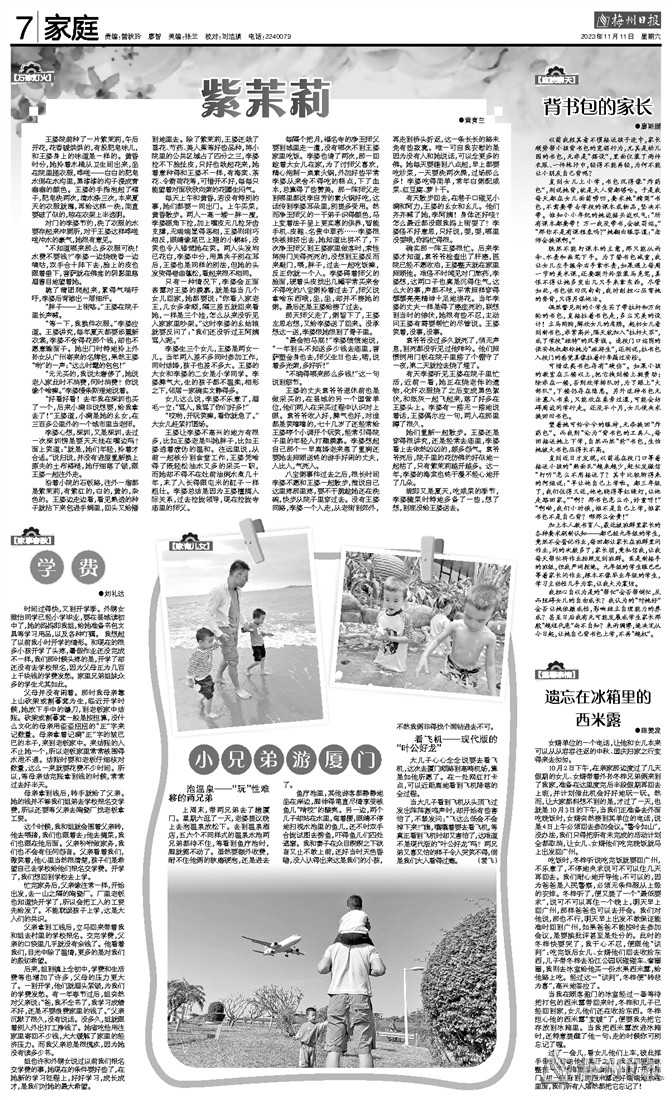 望着她可怜兮兮的眼神,无奈换回“炸药包”。而我则“沦为”背书包的工具人,每回接送她上下学,自然而然“抢”书包,生怕她被大书包压得长不高。