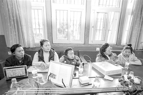 西藏拓岗文化传播有限公司的直播团队在讨论直播方案(11月10日摄)。