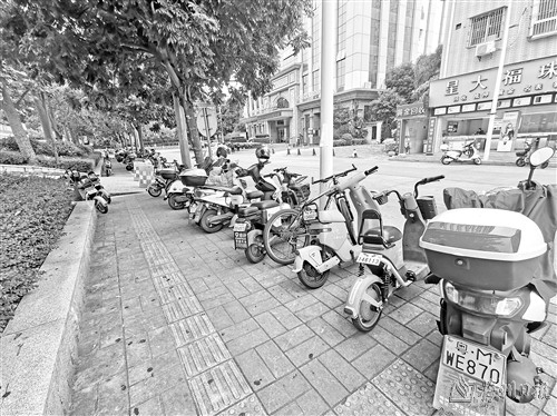 根据报料线索,记者来到客都汇地下停车场1号门入口,只见入口两侧人行通道上未划有停车线,却停有不少共享电单车和摩托车,行人只能在剩余空间通行。据舆情信息员反映,情况严重时,行人根本无法在人行通道上通行,只能走机动车道。遇到路面车辆较多时,行走既不方便,也存在安全隐患。
