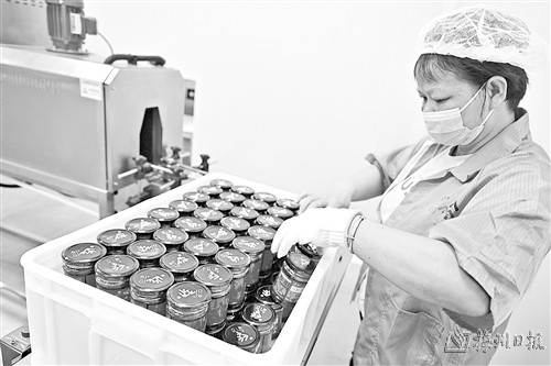 在众一口食品科技(梅州)有限公司生产车间内,一棵棵芥菜经过深加工,在生产线上“变”成一瓶瓶玻璃包装的酱菜。“今年上半年我们正式建成了首条酱菜标准生产线,并投入生产。若开足马力生产,每日能生产近万瓶酱菜。”余彦雄坦言,漉菜水分大、保存时间短,尽管该公司通过真空包装技术能够延长漉菜保存时间,但满足多元化的需求才能更好地打开市场。该公司积极与广州工商学院和兴宁技校开展合作,借鉴酱菜先进地区做法,提升传统漉菜的文化价值和经济价值,研发制作出开瓶即食、易于保存的深加工食品——漉菜干。
