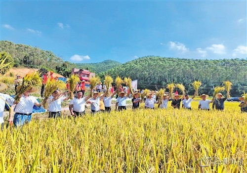 本报讯 喜看稻田千层浪,又是一年丰收时。近日,安流镇秋收开镰仪式在完塘村宝昇农业丝苗米种植示范基地举行。活动还邀请了县文学艺术界联合会、县书法协会、县美术协会、县摄影家协会的艺术工作者们齐聚稻田,用笔墨会友、书画情怀,共同绘就秋日田园丰收的美丽画卷。