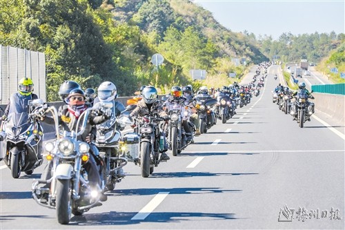 本报讯 (记者赖锋)11月18日8时30分,随着一声令下,“骑聚客都·驰骋万里”哈雷摩旅自驾游梅州活动正式开启。来自全国各地的400多名车友驾驶哈雷摩托车,从五华奥体中心惠堂体育场有序出发,沿途骑行打卡我市众多美丽景点和景观道路,感受世界客都的美丽风光,畅享速度与激情的“盛宴”。