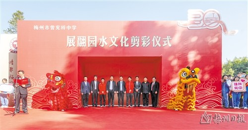 庆典活动当天,梅州市曾宪梓中学校园内彩旗猎猎、鲜花锦簇、锣鼓喧天,师生们手挥校旗和手举牌,整齐排列,夹道欢迎前来参加庆典活动的各界嘉宾和校友。当天举行了展翮园水文化项目剪彩仪式、建校30周年庆祝大会、“宪梓精神”大家谈、校友足球和篮球联谊赛、庆祝文艺晚会等活动,校园处处洋溢着喜庆热烈的气氛。
