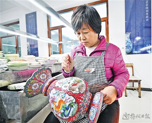 位于河北饶阳县的饶阳亿泽景泰蓝工艺品厂前身是乡办企业官亭珐琅厂,是河北省景泰蓝生产工艺比较完整的制作厂家。经过多年的发展,该厂培育了一支技术精湛的专业队伍,形成了集加工、制作、销售为一体的生产销售体系,出产的景泰蓝主要销往北京、天津、上海等十多个大城市,并通过文化公司销往海外,年销售额上千万,带动周边40名村民就业增收,助力乡村振兴。