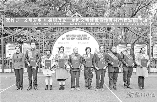 本报讯 日前,蕉岭县“文明寿乡·德润万家”乡风文明建设宣传百村行(蕉城镇专场)活动在镇山公园举行,这是继长潭镇后第二场镇级示范宣讲活动,进一步深化拓展蕉岭县新时代文明实践中心(所、站)建设,以文明实践引领文明乡风,助力“百千万工程”,为打造梅州苏区融湾先行区综合示范窗口提供强大精神力量。蕉岭县委常委、宣传部部长陈丽参加活动。