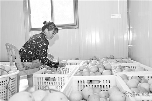 “别看这果子皮是青色的,但它已经熟了,果肉是清甜甘美的。”彭富荣在树上随手摘下一个果子递给记者,只见外表光滑,果大皮薄,送入嘴里,汁多清甜,带有淡淡的蜜味。彭富荣告诉记者,果园处于丘陵地带,日照时间长,气温高,早晚温差大,十分适合皇帝柑生长。“果园种植的皇帝柑品质好,近几年深受客户青睐。”彭富荣说。