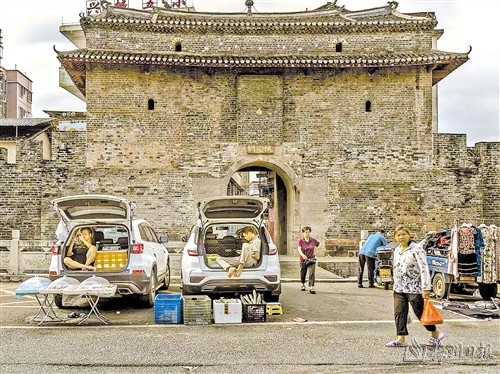 出得北门,见石光街依然熙熙攘攘,大家心有灵犀争先恐后融入买卖的人群里,在市区依傍着古城赴“圩”,平添几多闲情逸致。望不见首尾的整条街,店铺、推车、箩担、地摊,各式土特产品,琳琅满目,这架势比农村圩镇更像圩。吆喝叫卖,讨价还价,充耳都是兴宁口音,声声入耳,妙趣横生。
