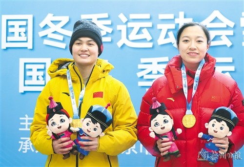 11月28日,第十四届全国冬季运动会女子双人雪车比赛在国家雪车雪橇中心举行。怀明明(吉林)/王璇(北京)组合获得冠军,应清(上海)/王瑜(浙江)组合获得亚军。
