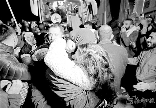 图为在约旦河西岸城市拉姆安拉,获释的巴勒斯坦人与亲人团聚。(新华社发)
