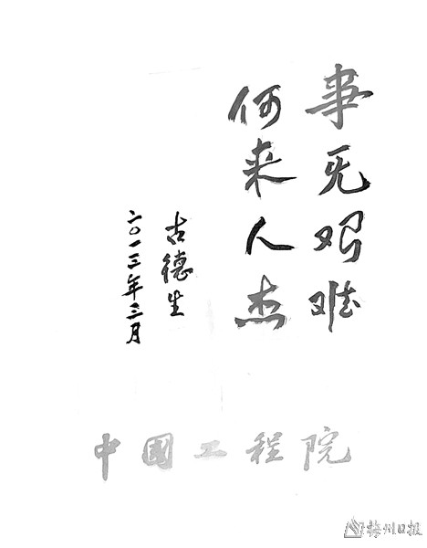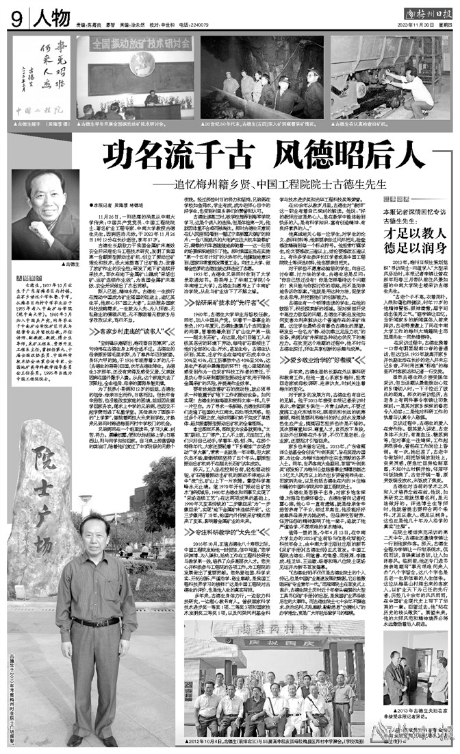 斯人已逝,精神永存。古德生一生疾行在推动中国成为矿业强国的征途上,追忆其生平,他那心怀“国之大者”,主动服务国家科技战略需求,一生敢为人先、为人师表、无私敬业的儒雅风范,无不激励着无数家乡后学孜孜以求,笃行不怠。