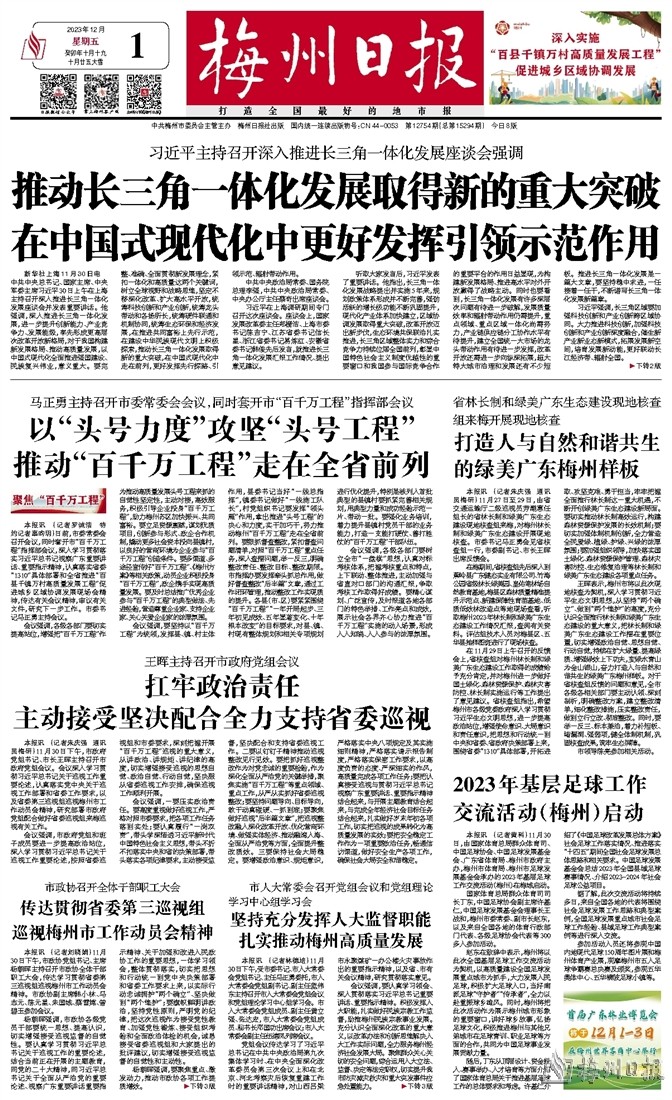 本报讯 (记者黄科)11月30日,由国家体育总局群众体育司、中国足球协会、中国足球发展基金会、广东省体育局、梅州市政府主办,梅州市体育局、梅州市足球发展基金会承办的2023年基层足球工作交流活动(梅州)在梅城启动。