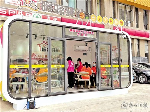 “平时工作累了,或者在等待接单的时候,可以到这里坐一坐,环境特别好。”在暖蜂驿站宁江新城点,外卖员王先生说。记者走进暖蜂驿站看到,站点内提供临时休息、免费充电、免费热水等服务,还专门配备了药箱、饮水机、微波炉、报刊书籍等,为新就业群体的户外劳动者提供了一个“冷可取暖、热可纳凉、渴能喝水、累能歇脚、伤可用药”的温情港湾。
