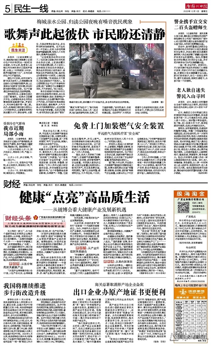 我市目前施行的《梅州市文明行为促进条例》中提到,在公共场所开展健身、娱乐、经营等生产生活活动时,应当遵守噪声污染、大气污染、水污染防治等法律法规有关规定,避免噪声、大气污染、水污染等影响他人,还应控制电子设备外放音量。在走访过程中,有市民告诉记者,部分“歌友”“舞友”时常“钻空子”。“我们向相关部门举报后,执法人员一赶过来,他们就把音响关掉,但第二天又继续唱歌。”该市民表示,目前有周边住户正通过录视频的方式收集证据。在此呼吁广大市民自觉遵守公共场所相关规定,约束自身言行,不要让自己的快乐成为他人的烦恼。