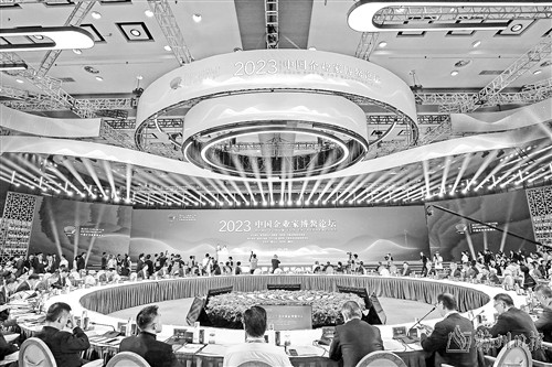 这是2023中国企业家博鳌论坛主论坛现场(12月4日摄)。