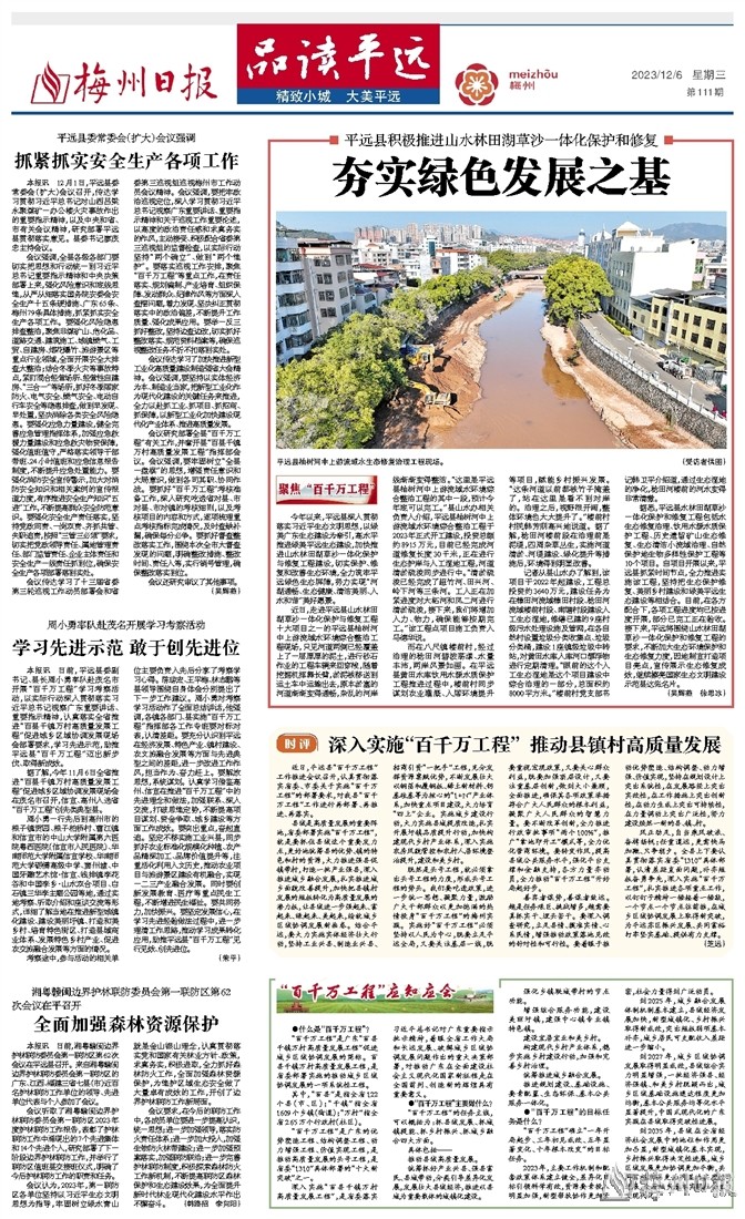 本报讯 日前,平远县委副书记、县长周小勇率队赴茂名市开展“百千万工程”学习考察活动,以实际行动深入贯彻落实习近平总书记视察广东重要讲话、重要指示精神,认真落实全省推进“百县千镇万村高质量发展工程”促进城乡区域协调发展现场会部署要求,学习先进示范,助推平远县“百千万工程”迈出新步伐、取得新成效。