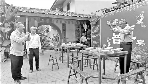 客家文化根在中原。客家地区的宴饮习俗尊崇古礼,始终按长幼有序、贵贱尊卑、亲疏有别的礼仪安排宾客依次入席。古已有之的“安席”礼仪,就是以一种普及性的道德实践活动,成就孝悌、尊贤、敬长养老的道德风尚,达到德治教化的目的。宴饮待客是联络感情、维系亲情、结交权贵的一种载体,也是一种文化。为了体现主人的热情和涵养,办一场体面的“宴饮”颇费一番工夫。
