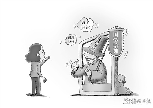 “明成祖后人授课”“升职加薪课程9900元”……近期,互联网上出现一批打着“国学培训”幌子,声称可以“调理身体”“改名旺运”的培训机构,利用“易经大师”“发扬优秀传统文化”等虚假宣传圈钱敛财。专家表示,“伪国学”培训不仅造成消费者财产损失,还向社会大众传播扭曲、错误的价值观,必须警惕。沈海涛/图