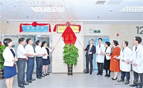 本报讯 (记者吴丽伶 通讯员温玉燕)日前,中山大学附属第三医院粤东医院(以下简称“粤东医院”)举行脊柱外科、关节外科、戎利民教授名医工作室揭牌仪式(如右图)。中山大学附属第三医院党委书记吴京洪,中山大学附属第三医院院长、粤东医院院长戎利民参加。