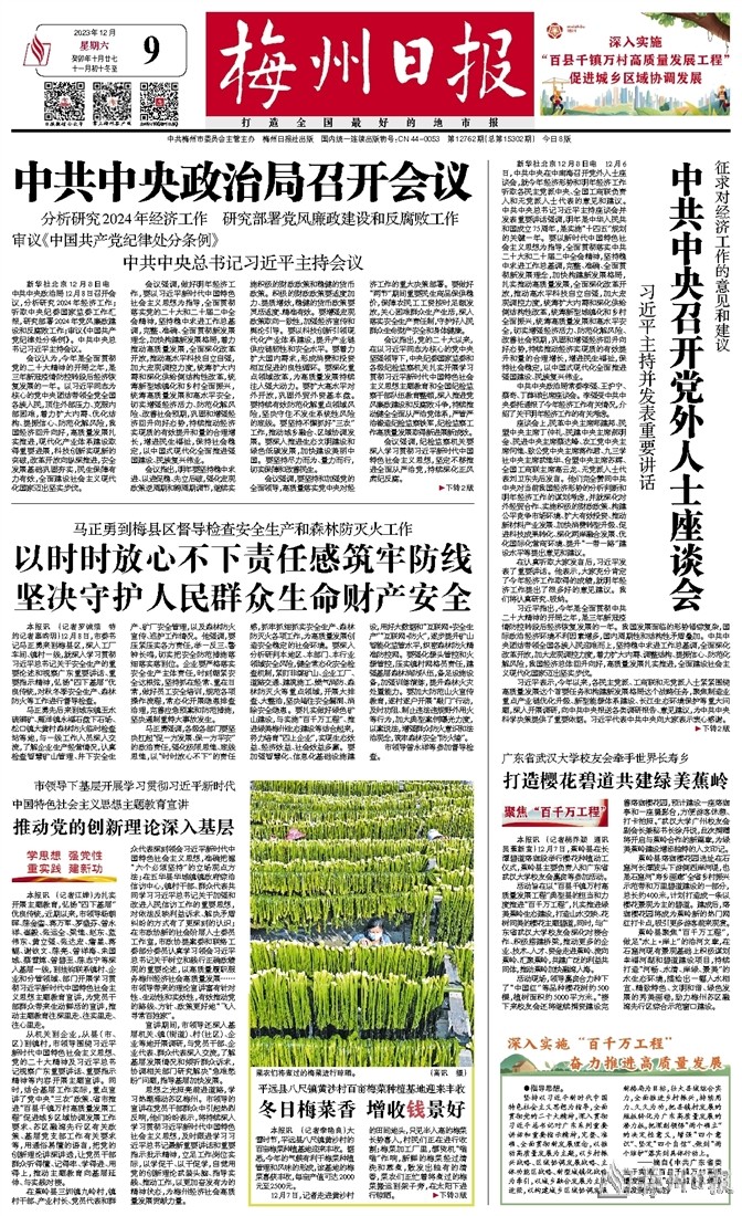 本报讯 (记者罗诚浩 特约记者辜昀玥)12月8日,市委书记马正勇来到梅县区,深入工厂车间、镇村一线,就深入学习贯彻习近平总书记关于安全生产的重要论述和视察广东重要讲话、重要指示精神,弘扬“四下基层”优良传统,对秋冬季安全生产、森林防火等工作进行督导检查。