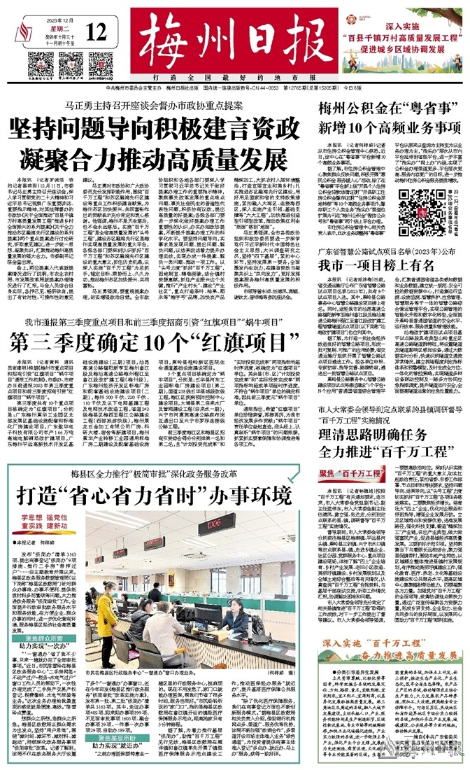 本报讯 (记者黄科 通讯员谢建明)根据《梅州市重点项目和招商引资“红旗项目”“蜗牛项目”通报工作机制》,市委办、市府办日前通报2023年第三季度重点项目和前三季度招商引资“红旗项目”“蜗牛项目”。