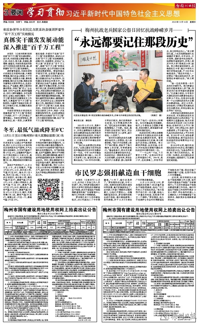 2023年12月13日,是第十个南京大屠杀死难者国家公祭日,本报记者跟随市关爱抗战老兵志愿者协会走访慰问我市部分健在的抗战老兵,听他们讲述抗战波澜壮阔的峥嵘岁月、分享今天和平幸福生活的日常点滴。