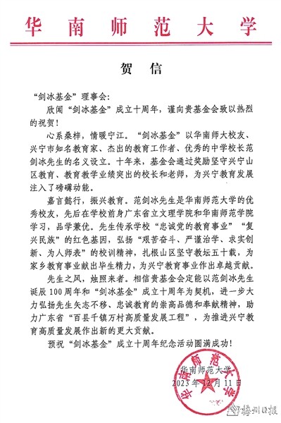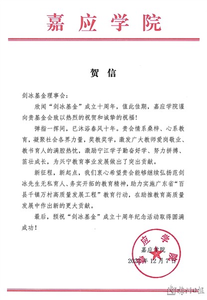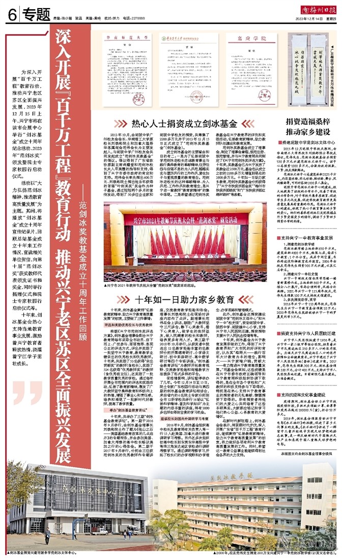 十年来,剑冰基金会热心支持当地教育事业发展,激励着兴宁教育者释放热情,浇灌着宁江学子茁壮成长。