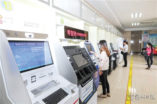 与此同时,我市持续推进“指尖办”改革,拓展“自助办”服务。当前,在“粤省事”“粤商通”梅州专区,共有本地特色“指尖办”事项123项,“粤省事”梅州可办事项达943项,“粤商通”梅州可办事项达808项,实现“办事预约”“线上取号”“亮码免证办”等系列服务掌上办理;全市2413台“粤智助”政府服务自助机100%覆盖全市行政镇、村,共上线本地特色“自助办”事项21项,“粤智助”梅州可办事项达274项,累计为112.7万人提供服务。
