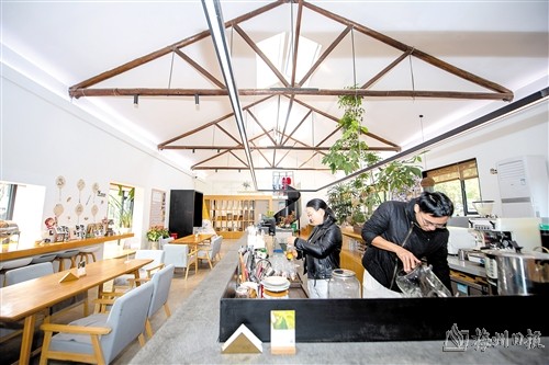 这是由宁波市江北区鞍山村老旧厂房改造而成的构城·安屿民宿的前台(12月20日摄)。