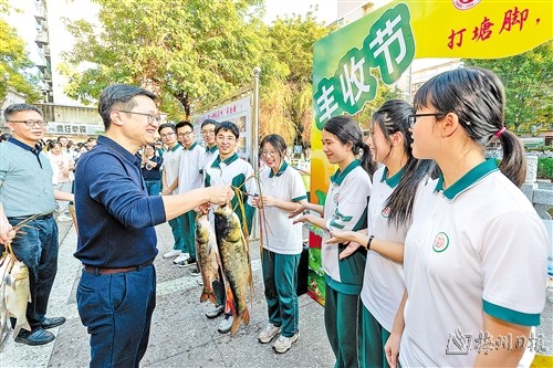 “生活即教育,教育即生活。梅州中学拥有开展项目式学习的良好环境,特别是荷塘,是每一代梅中学子的美好记忆。但由于疏于管理,荷塘不复往日模样。所以学校对荷塘进行了清理改造,经过池塘清理、打井换水、改造种莲等,焕发活力,种荷养鱼,成为校园一景,兼具劳动教育功能。”梅州中学校长罗庆松告诉记者,“今年,荷塘成为广大师生的打卡地,我们结合客家习俗和劳动教育,组织举办了梅州中学首届校园荷塘丰收节。”