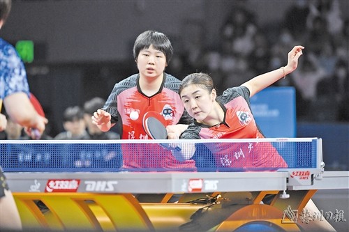 12月22日,深圳大学队组合蒯曼/陈梦(右)在女团半决赛中。她们以3比0战胜华东理工大学队组合赵尚/李雅可。最终深圳大学队以总比分3比1战胜华东理工大学队。