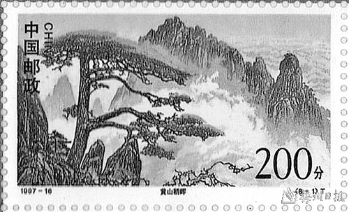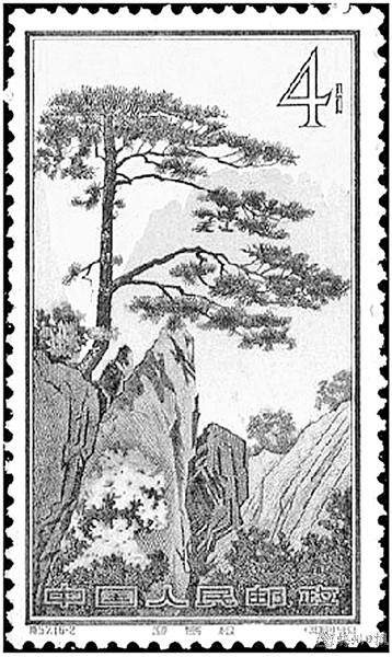 “霜寒枝更劲,崖峭揽怀中。天地囤真气,不摇杨柳风。”松树雄伟苍劲、高大挺拔,具有很高的经济价值和观赏价值。因其经冬不落叶、雪压挺且直的特性被人们视为坚韧不拔的精神象征。迎客松更是松树中的佼佼者,它苍劲奇秀,俊俏多姿,雍容潇洒,美不胜收。1963年10月15日,原邮电部发行的《黄山风景》特种邮票第2枚“迎客松”(图①),图案为黄山风景区玉屏楼右侧的迎客松,画面展现了迎客松的身姿,右侧枝丫伸出,宛若好客的主人伸出手臂,热情欢迎远方客人的到来;1997年10月20日发行的《黄山》特种邮票的第1枚“黄山朝晖”(图②),同样也展现了黄山奇松的勃勃英姿;1998年3月26日,中国邮政发行的《九寨沟》特种邮票小型张(图③)。图案为生长在九寨沟一株形态奇特的“迎客松”,它的枝丫只在一边生长,仿佛在挥手招呼客人;2014年9月13日发行的《长江》特种邮票的第6枚“黄山独秀”,再一次呈现了黄山迎客松绰约风姿。