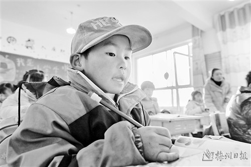 12月25日,积石山县柳沟乡阳山希望小学的学生在上语文课。