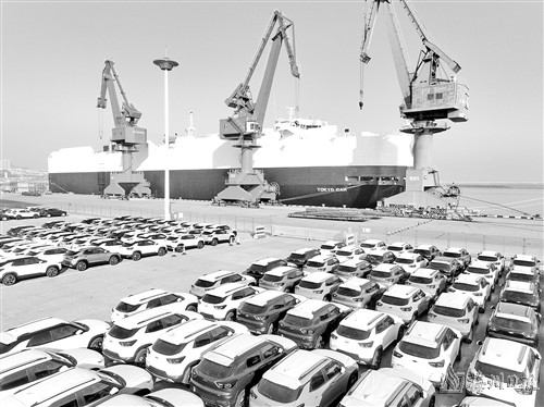 进入年末,江苏连云港东方港务分公司码头一片繁忙景象,一批又一批国产汽车陆续装船,通过海运出口国外。今年以来,连云港通过加密滚装班轮航线,开通车辆运输绿色通道,优化装卸作业流程,出口车辆持续保持快速增长态势。 (新华社发)