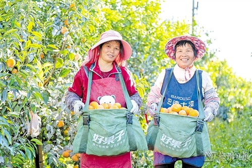 而在龙田镇坪见村,通过“产业村长”的带动,该村也找到了富有特色的产业发展道路。走进粤和兴·粤香柑产业基地,果林一片郁郁葱葱,这个曾经的荒坡地,如今已经是带动当地群众致富的千亩沃柑园。“目前基地占地面积达1100多亩,主要发展沃柑种植、柑橘种植、农产品加工以及农业观光休闲旅游开发。”种植基地负责人、兴宁市粤和兴农业发展有限公司董事长杨彩琼告诉记者,2022年,坪见村仅沃柑基地种植项目就带动村集体经济年收入22.75万元。如今已有周边村庄加入沃柑、柑橘的种植队伍中,以点带面推动兴宁柑橘产业的发展。