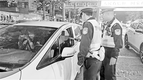 2023年12月29日晚上,交警部门在梅州城区各主要交通要道都设置了检查点,由交警、特警、治安等多警种联合对过往车辆进行检查。在检查过程中,执勤民警对车辆驾驶员进行酒精检测,同时核对驾驶员和车辆信息,当发现汽车后排乘客没有系安全带时,一一进行提醒。