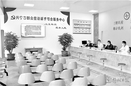 据了解,信访诉求综合服务中心常驻单位有兴宁市委政法委、兴宁市公安局、兴宁市司法局,为群众提供心理健康辅导、安全检查、秩序维护、答疑解难、释法明理、科学引导依法分类处理信访诉求等服务。同时,信访诉求综合服务中心还聚合了兴宁市自然资源局、住建局、农业农村局、林业局、民政局、水务局、人社局、科工商务局、城综局、市场监管局等多个轮驻单位。其他职能部门作为随驻单位,采取机动随驻的方式,由信访诉求综合服务中心根据实际统一调度。“兴宁市群众信访诉求综合服务中心整合了人民来访接待中心、公共法律服务中心、访调服务等多个中心平台,充分动员行政、司法、信访等力量,形成了统一的综合服务平台,凝聚了各方的工作合力,形成了良好的效果。无论群众反映事项涉及多少部门,均可由信访诉求服务中心统一受理、统一办理。”兴宁市信访局相关负责人说,兴宁市群众信访诉求综合服务中心建成后,群众到各职能部门反映诉求的次数人数显著减少,逐渐形成了有事就到“信访超市”的习惯。