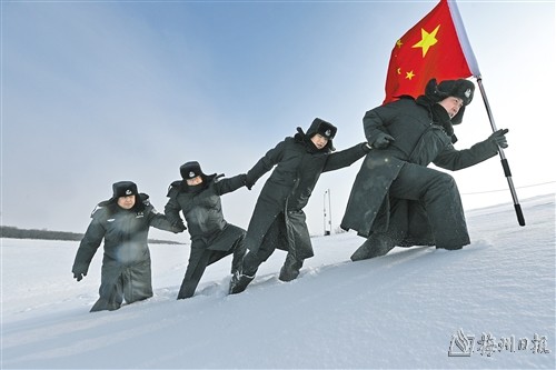 旭日初升,“嘎吱嘎吱”的踏雪声打破了沉寂,一面鲜艳的五星红旗迎着霞光出现在了江面上——在“中国东极”黑龙江省抚远市,黑瞎子岛边境管理大队黑瞎子岛边境派出所的移民管理警察又开始巡逻了。