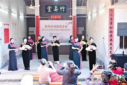 本报讯 (记者张莹娜)近日,梅江区江南街道中心坝社区在新中一队四溪角巷老屋开展戏曲进乡村文艺活动,展示充满地域文化特色的优秀文化艺术成果,丰富群众文化生活。