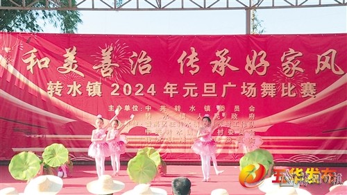 本报讯 为深入实施“百县千镇万村高质量发展工程”,充分展现群众健康积极向上的精神风貌和时代风采,近日,转水镇在矮车村文化广场举行了以“和美善治 传承好家风”为主题的2024年元旦广场舞比赛,来自各村的7支队伍、约80名参赛选手同台竞技,为观众带来了一场丰富的视觉盛宴。