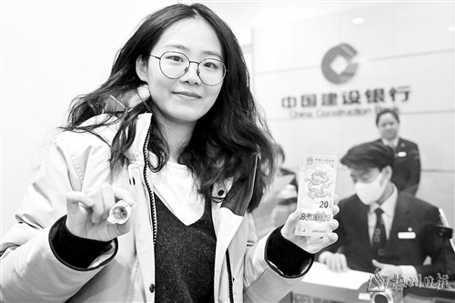 1月9日,市民胡女士展示在中国建设银行北京兴融支行兑换的2024年贺岁双色铜合金纪念币和纪念钞。