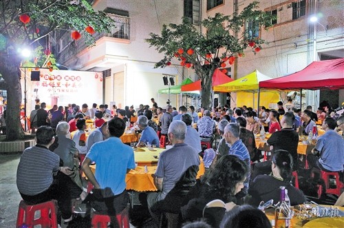 “这是我们小区改造后邻里间的首场聚会。大家坐在一起拉家常,增进邻里感情。”2023年9月26日晚,梅江区三角镇墟镇社区金龙花园小区居民陈秀平对小区“百家宴”活动连连称赞。当晚,150多户居民代表围坐在一起吃晚饭、看节目、聊家常,现场气氛温馨和谐,每个人的脸上都洋溢着幸福的笑容。此次举办“百家宴”,是业主们为感谢政府的民生工程所为,也是促进邻里关系的重要举措。
