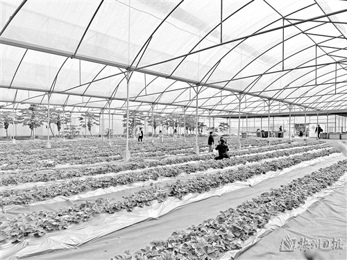 走进位于客家农夫生态园的草莓种植基地,置身大棚中,可以闻到阵阵的草莓香。一垄垄草莓苗油绿茂盛,颗颗鲜红的果实点缀其间,鲜嫩欲滴,令人垂涎。而游客们也在尽情体验采摘的“莓”好乐趣。