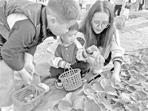 不少市民游客趁着晴好天气,走进田间观赏田园风光、体验采摘乐趣,品尝草莓的甜蜜。“今天妈妈带我过来摘草莓,草莓又大又甜又好吃,摘草莓真好玩。”曾梓杰小朋友高兴地说。“我们是从文福镇自驾过来摘草莓的,趁天气好,带孩子出来走走。”游客陈佳裕告诉记者。